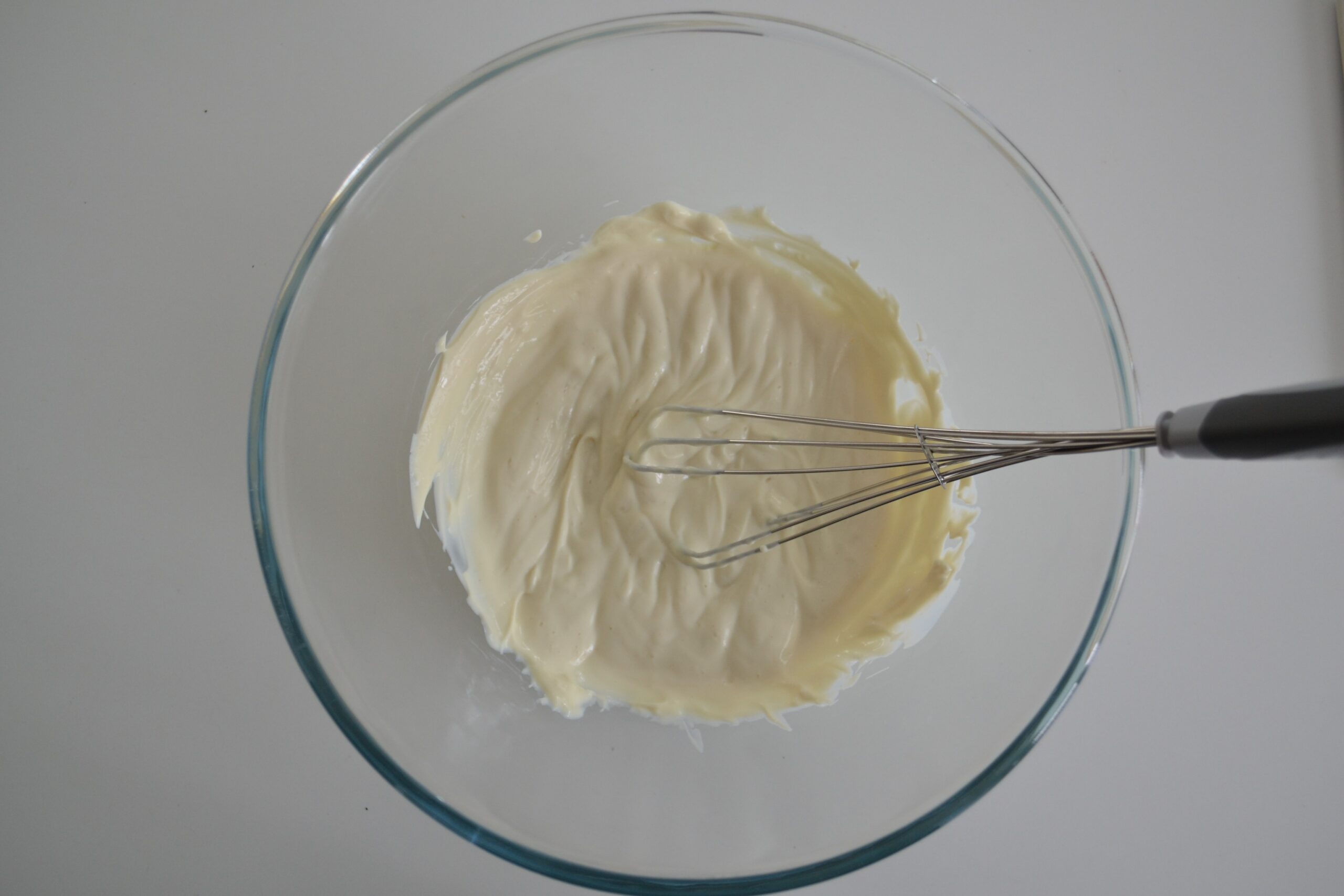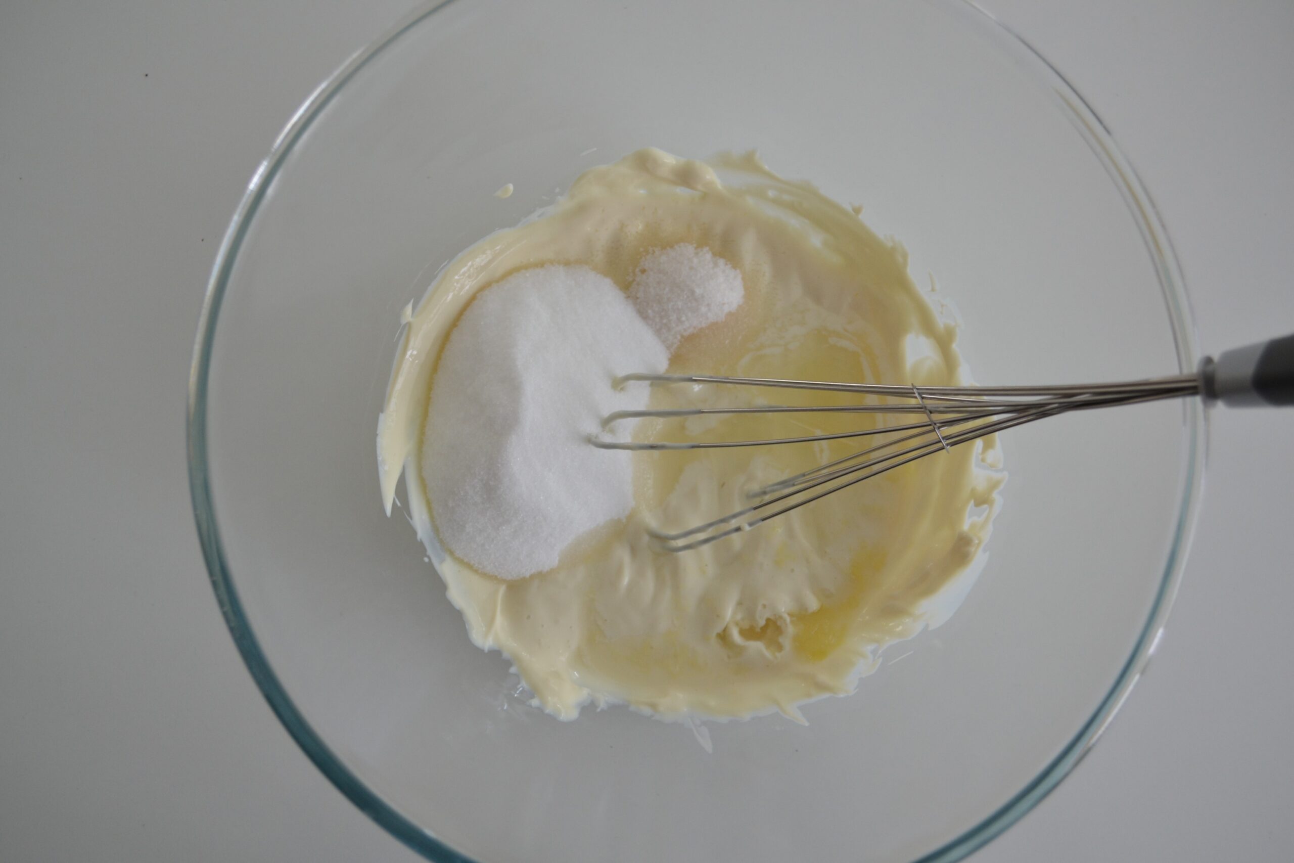 - Klop de 250 gram plattekaas los en voeg vervolgens de 70 gram suiker, het snufje zout, het citroensap en de vanillesuiker toe en blijf kloppen tot het geheel glad is.