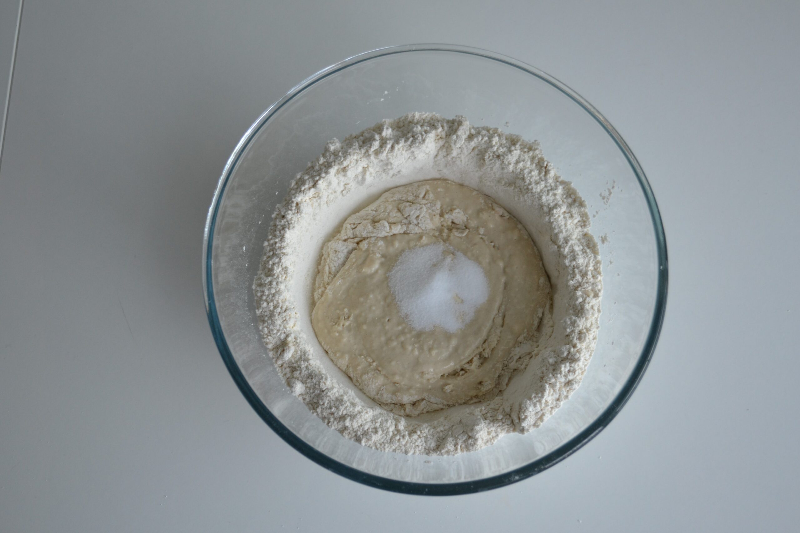 - Meng verder totdat alle melk is opgenomen door de bloem.